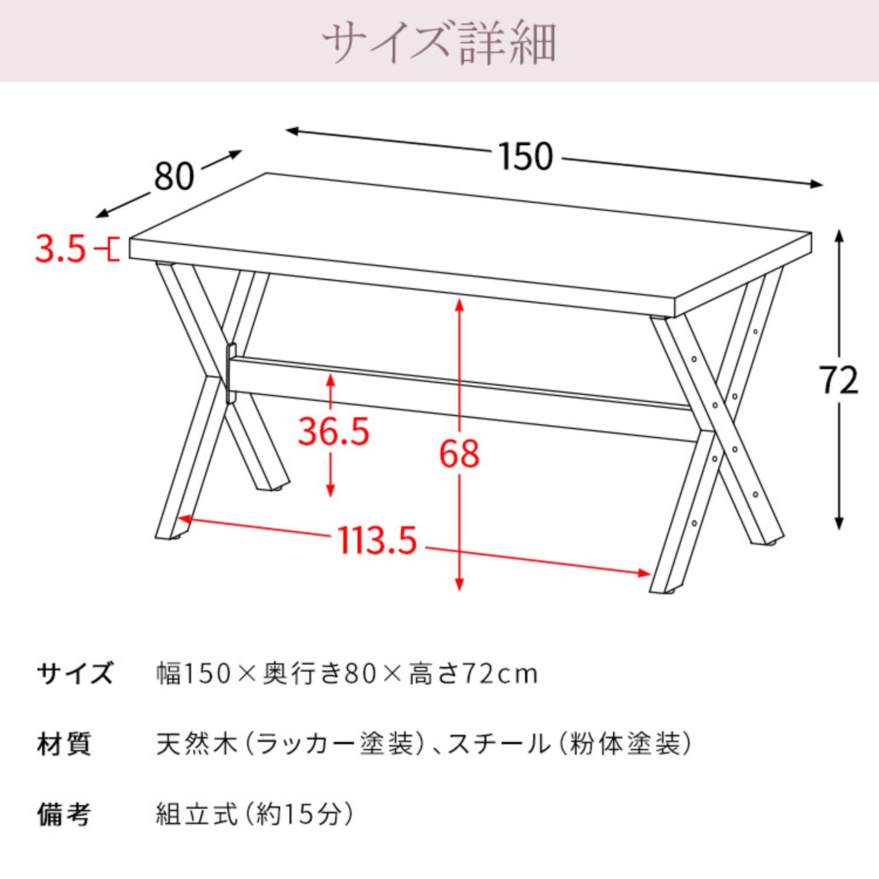■商品サイズ(約):幅150cm、奥行80cm、高さ72cm