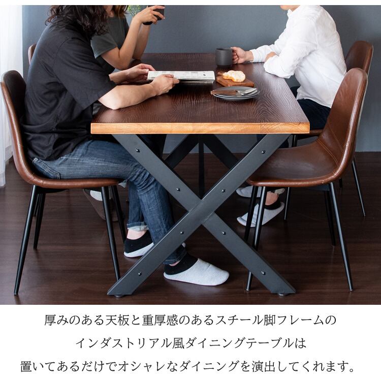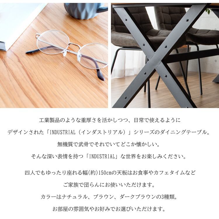 ダイニングテーブル 1台 単品 150cm幅 ブラウン ナチュラル ダークブラウン 食卓用テーブル 4人用テーブル 食卓机 おすすめ おしゃれ 北欧 モダン スタイリッシュ インダストリアル ミッドセンチュリー ヴィンテージ調 四人用ダイニングテーブル 作業テーブル 作業机 作業台 天然木 スチールフレーム
