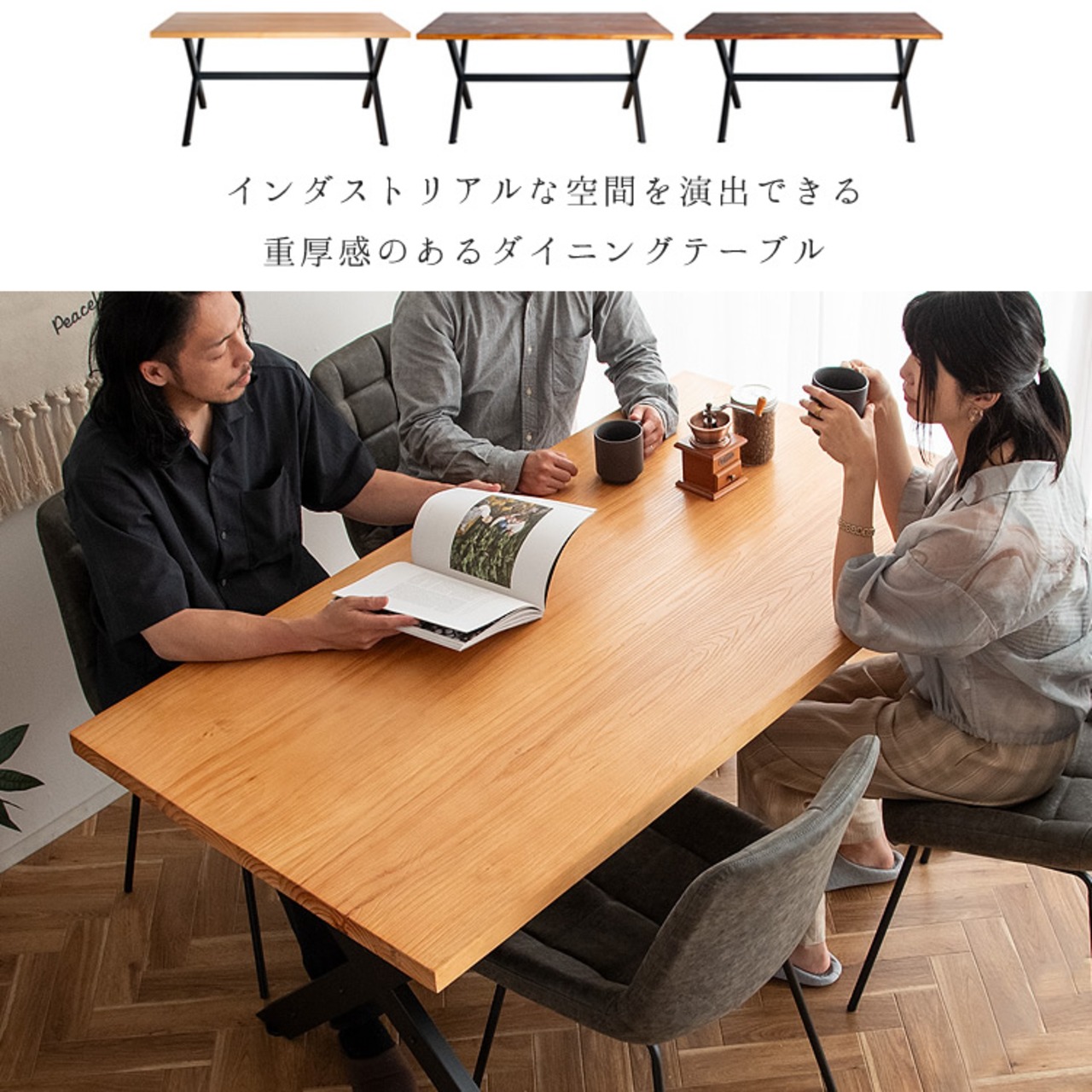厚みのある天板と重厚感のあるスチール脚フレームのダイニングテーブルです。