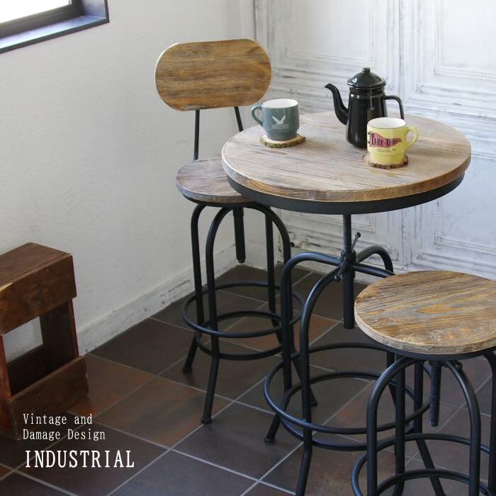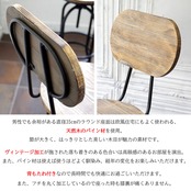 直径(約)35cmのラウンド座面は、ヴィンテージ加工が施されており落ち着きのある色合いで、節が大きく、はっきりとした美しい木目が魅力的な天然木のパイン材を使用しています。
