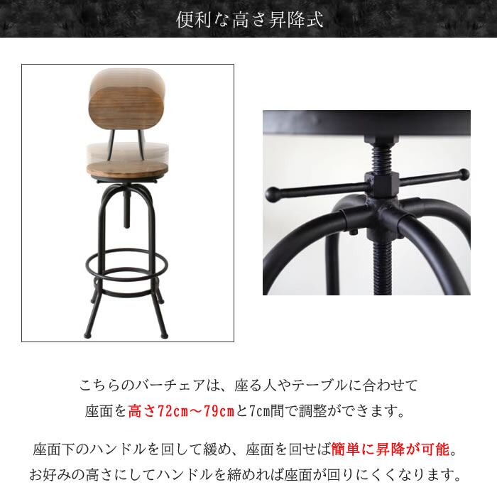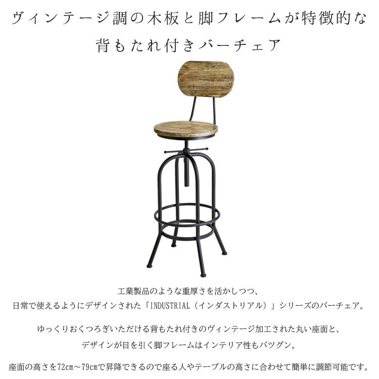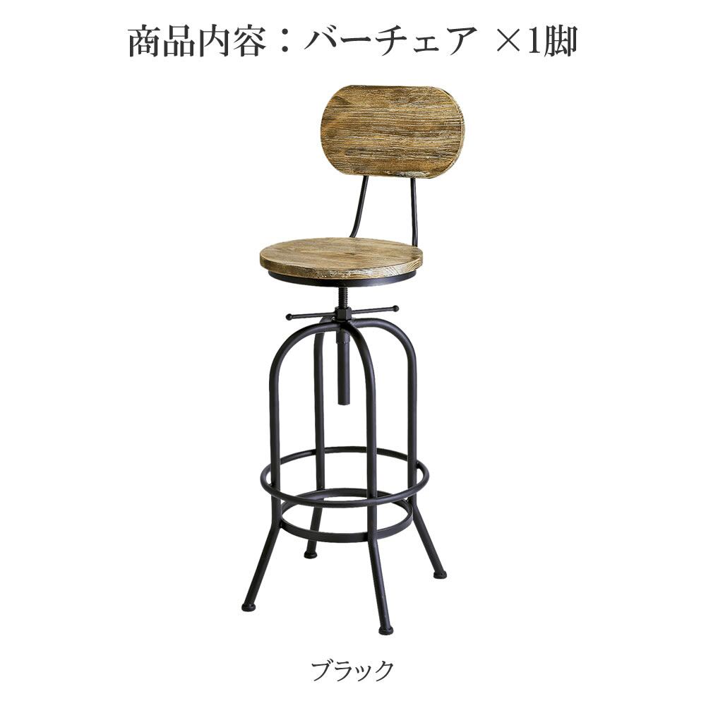 バーチェア 49cm幅 ブラック 円形座面 丸形座面 円型座面 丸型座面 背もたれ付き 肘置き無し 肘掛け無し 足置き付き アームレスチェア おすすめ おしゃれ 北欧 モダン スタイリッシュ ヴィンテージ加工 ミッドセンチュリー インダストリアル 昇降チェア 昇降椅子 リビングチェア カフェチェア ハイチェア 高さ調整可能 円型座面 天然木 パイン材 スチールフレーム
