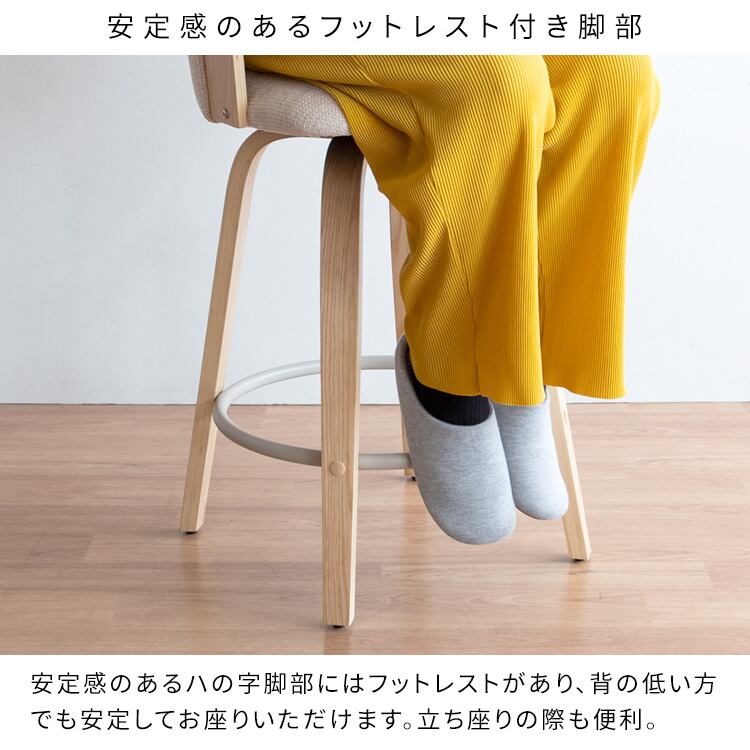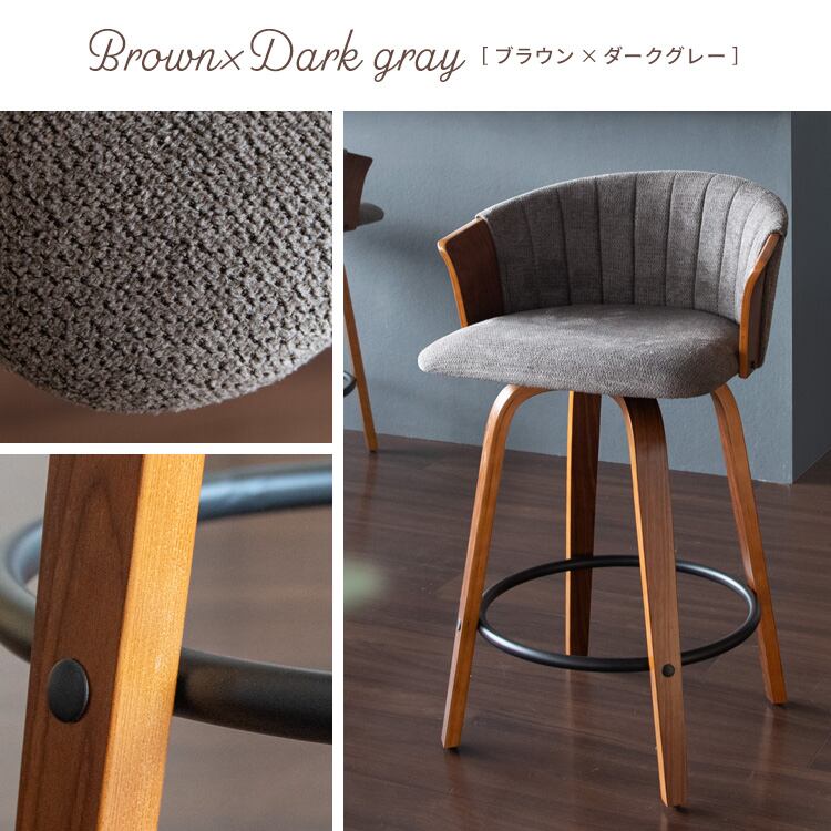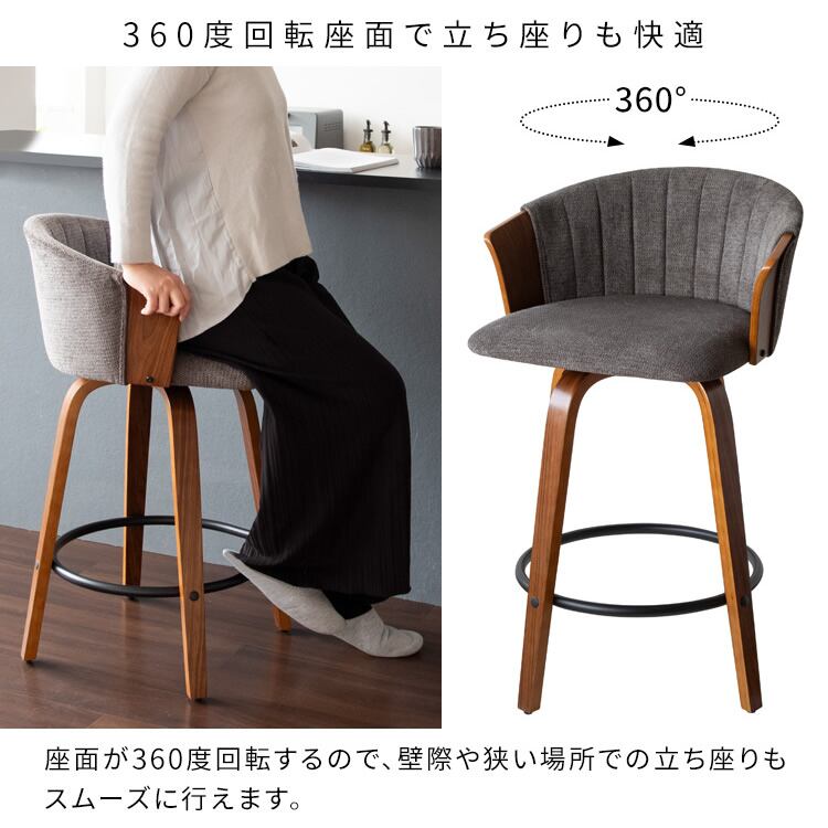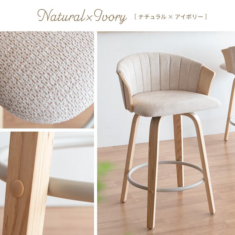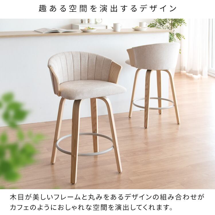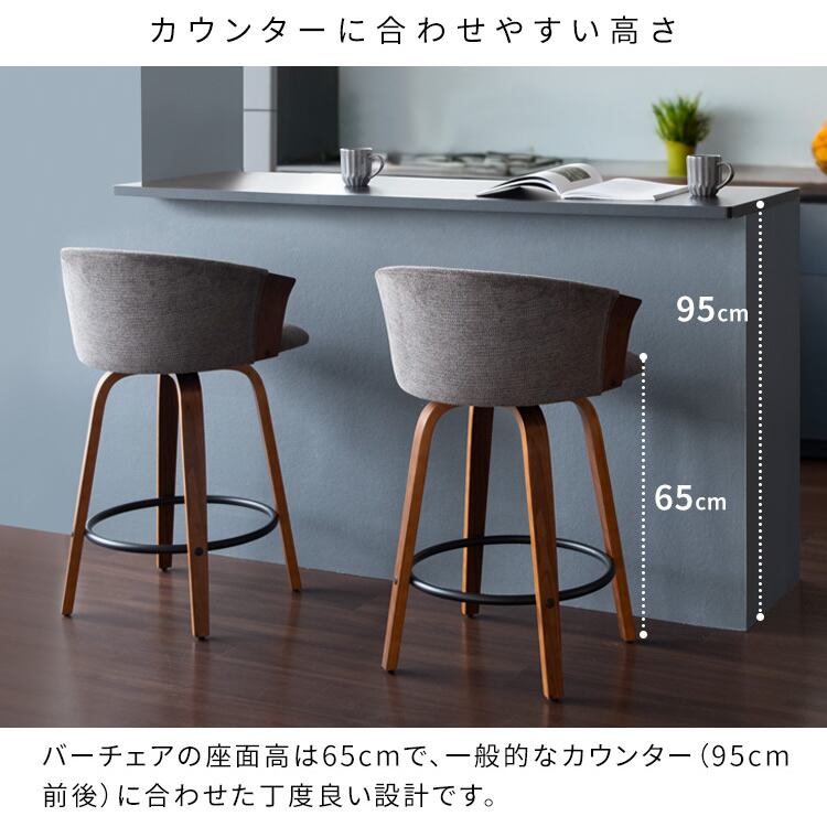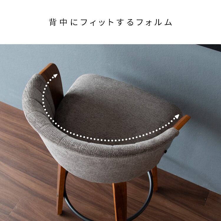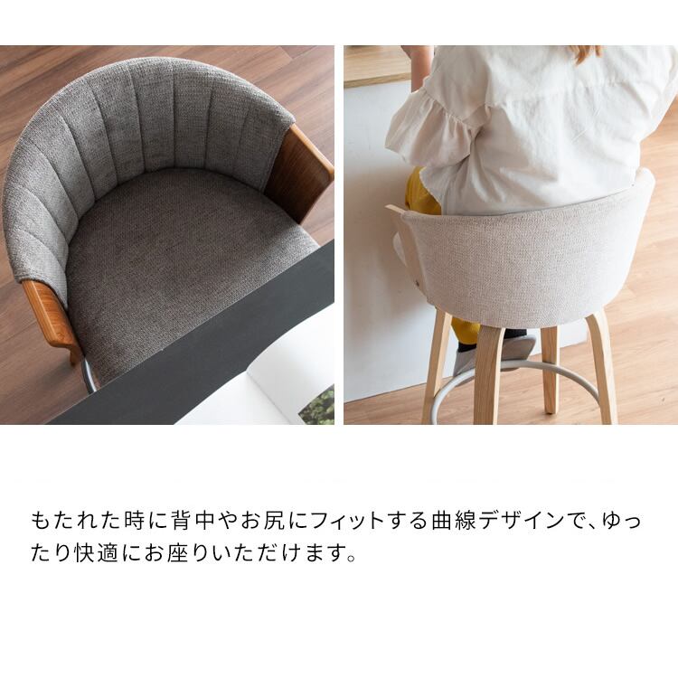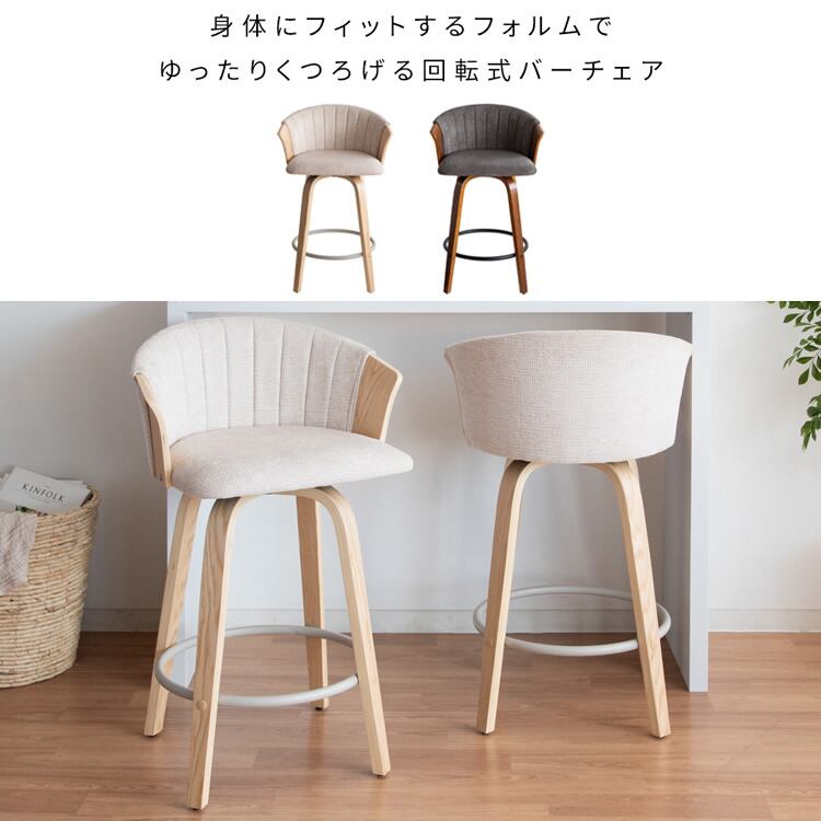 バーチェア 55cm幅 ナチュラルアイボリー ブラウンダークグレー カウンターチェア ハイチェア 背もたれ付き ファブリックチェア おすすめ おしゃれ 北欧 モダン スタイリッシュ 木製フレーム 回転式 360度回転 回転式チェア 回転いす 幅55cm 奥行49.5cm 高さ86cm 座面高65cm