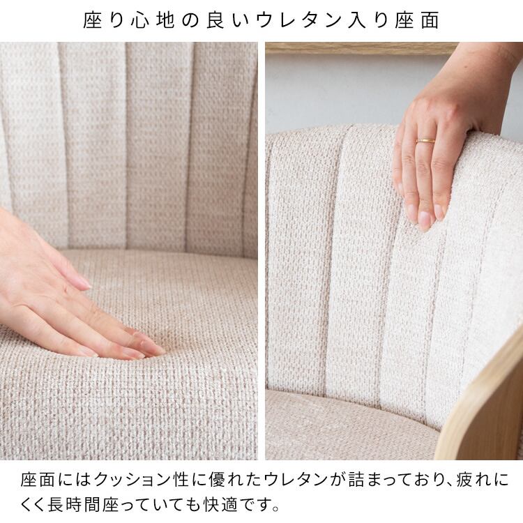 背中にフィットする曲線デザインの背もたれは、もたれた時に背中やお尻にフィットし快適にお座りいただけます。