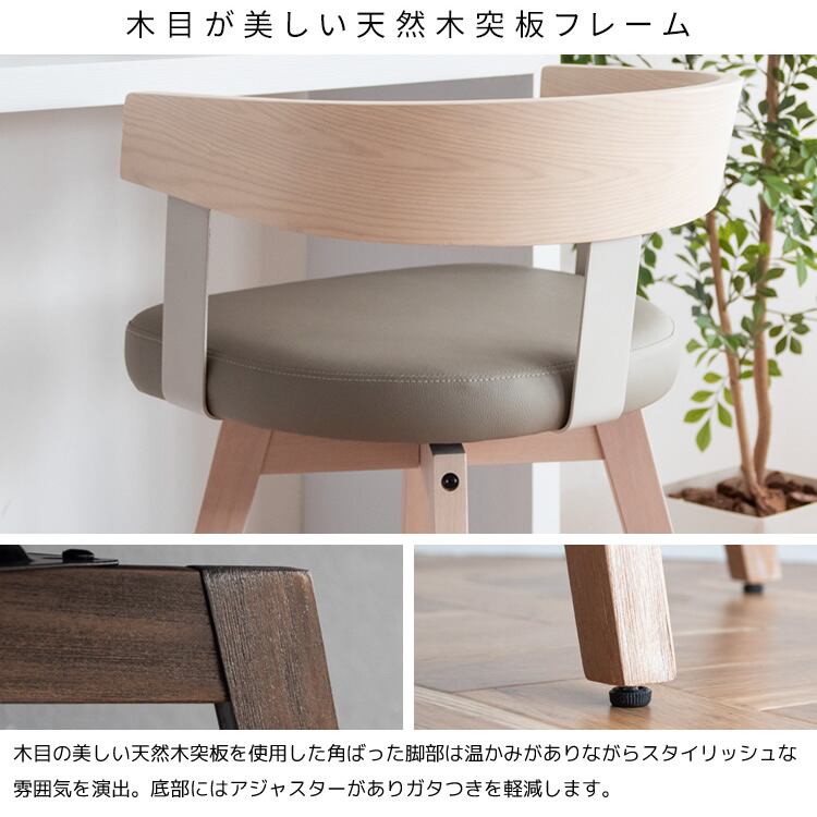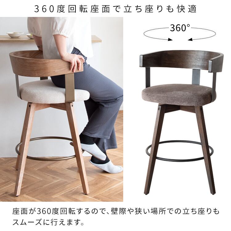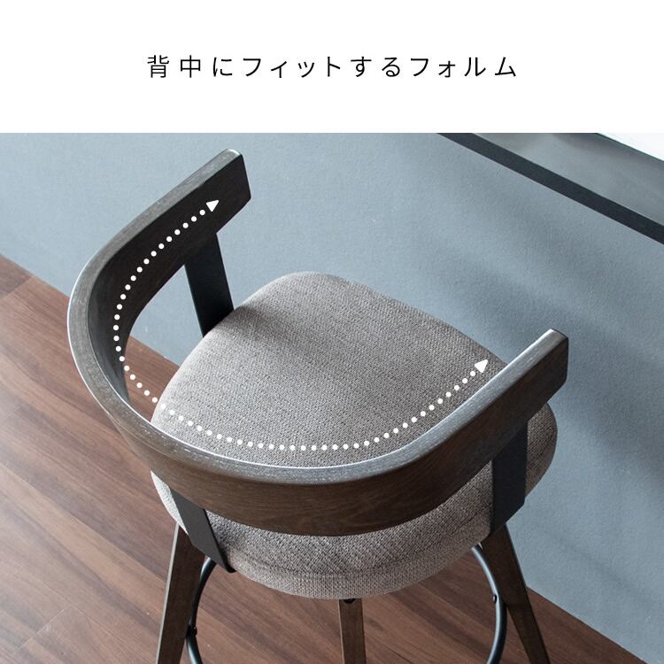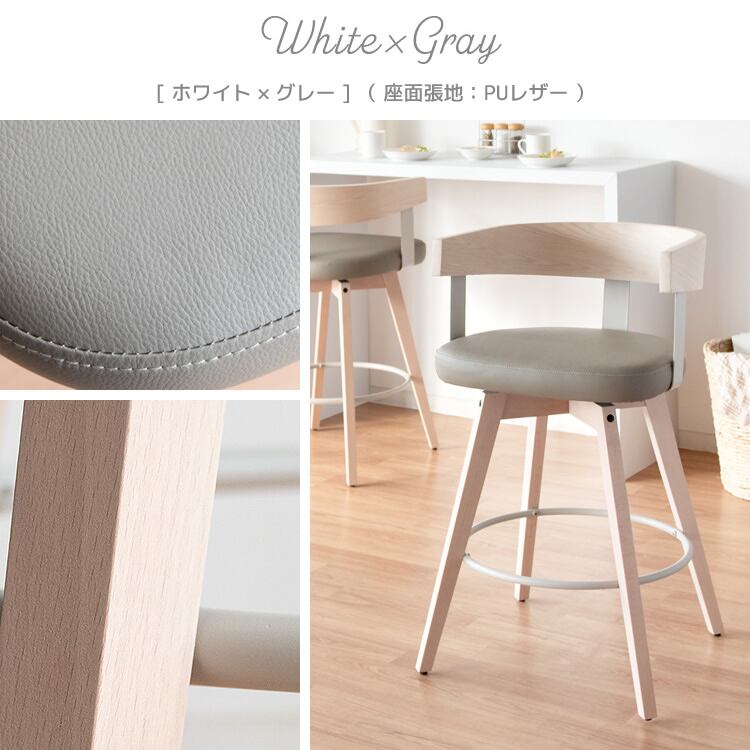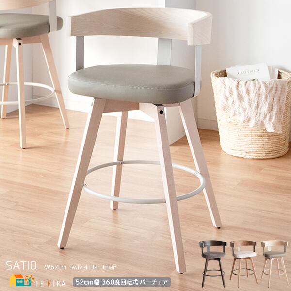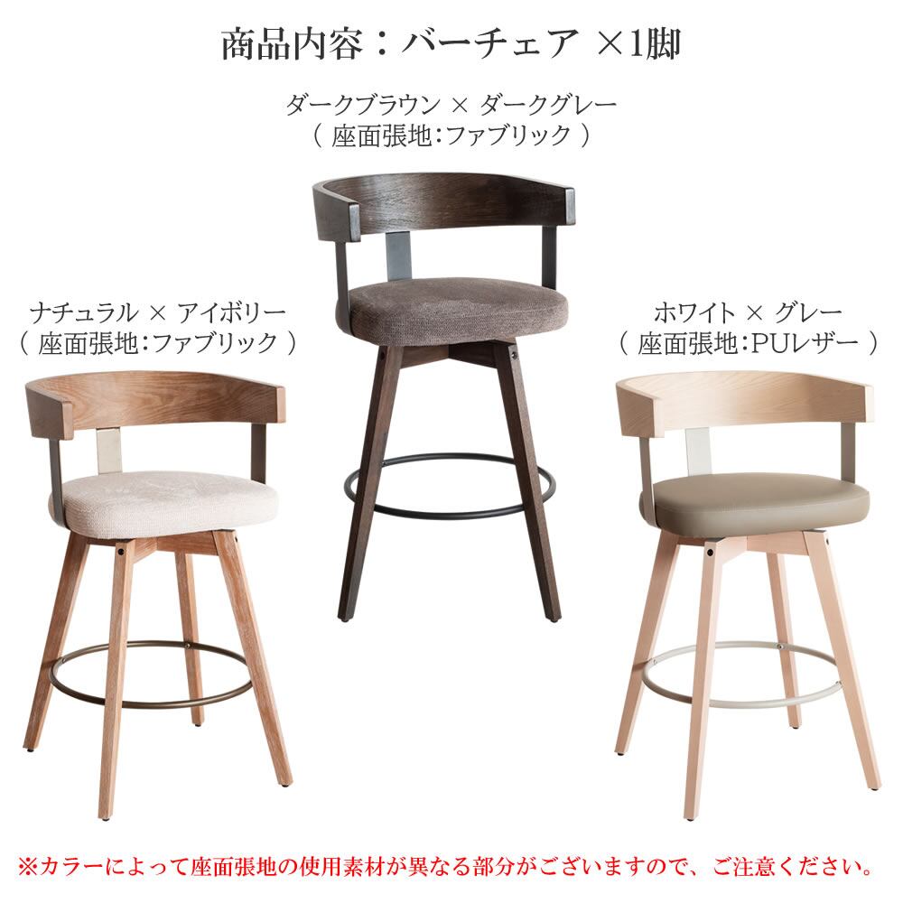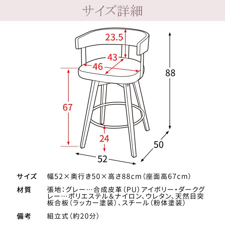 バーチェア 52cm幅 ホワイトグレー ナチュラルアイボリー ダークブラウンダークグレー ファブリック 合皮 合成皮革 PUレザー カウンターチェア ハイチェア 背もたれ付き おすすめ おしゃれ 北欧 モダン 360度回転 回転式チェア 回転いす 幅52cm 奥行50cm 高さ88cm 座面高67cm