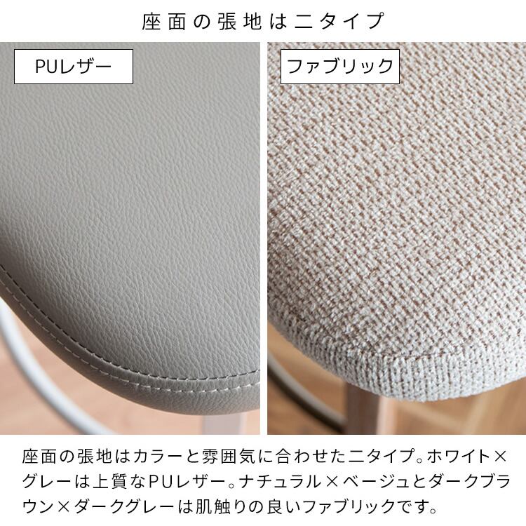 座面張地には、カラーによって、PUレザー(合成皮革)と肌触りの良いファブリック生地を使用しておりお好みでご使用いただけます。