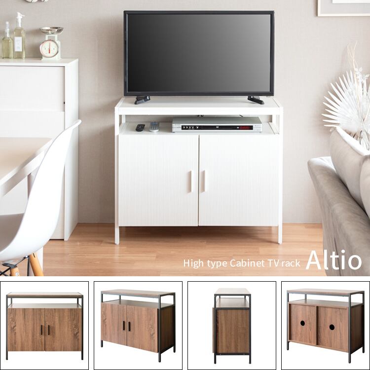 ハイタイプテレビ台 80cm幅 ブラウン ナチュラル ホワイト キャビネット サイドボード TV台 TVラック TVボード テレビラック テレビ台 テレビボード 扉付き収納 おすすめ おしゃれ 北欧 モダン スタイリッシュ ハイタイプ 可動棚 省スペース 幅80cm 奥行37cm 高さ70cm 収納