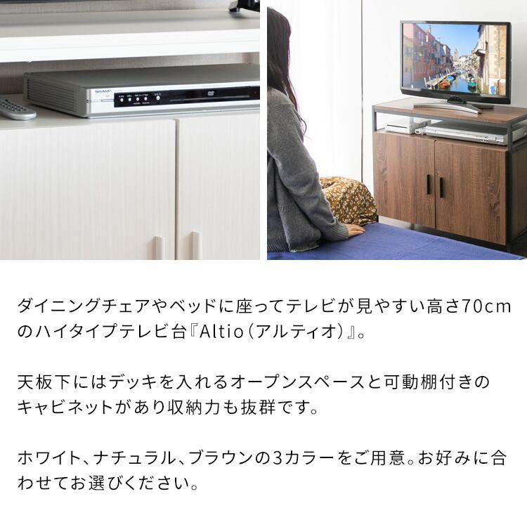 ダイニングや寝室での使用に最適な高さ(約)70cmの収納付きハイタイプテレビ台です。