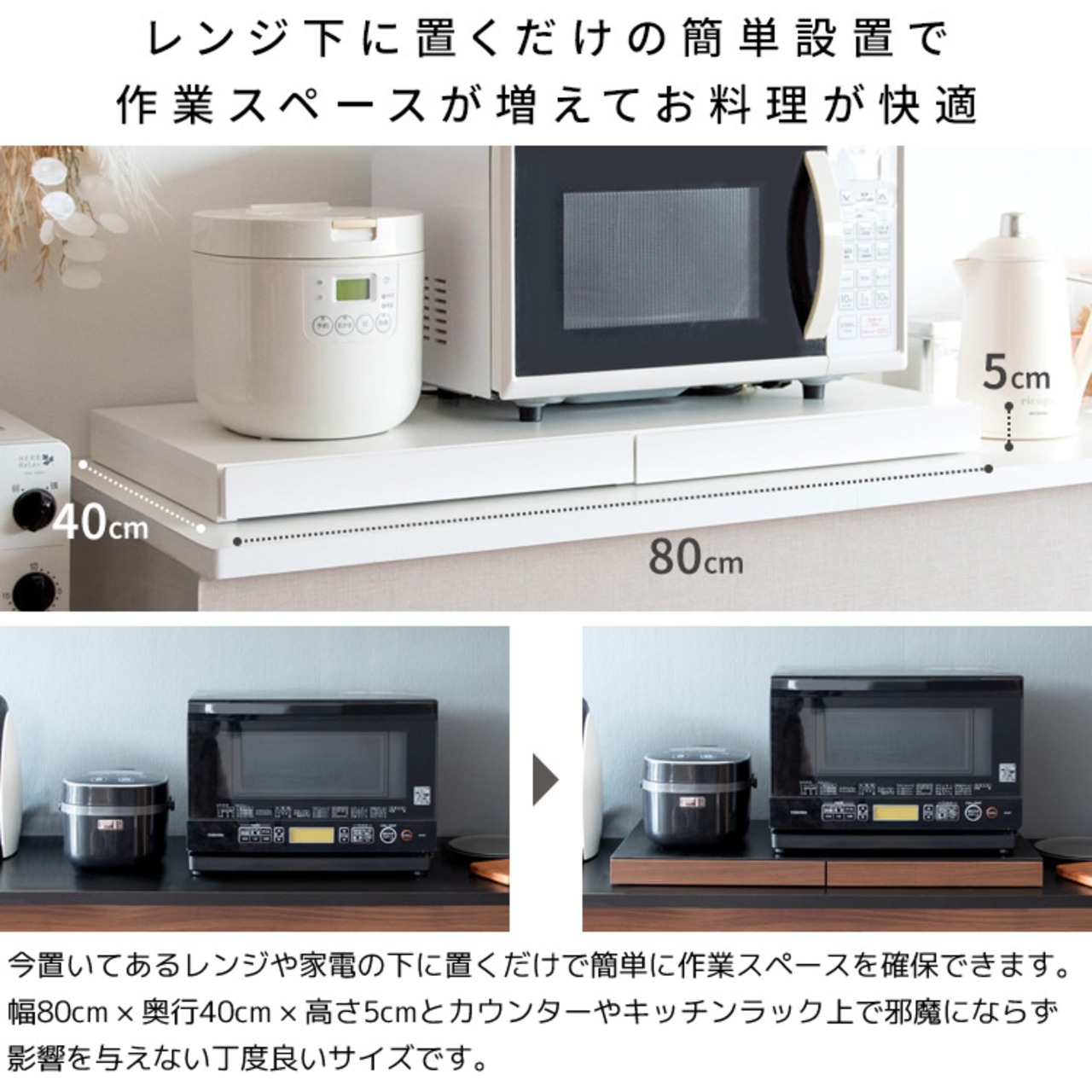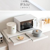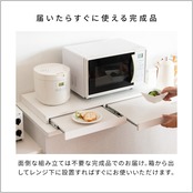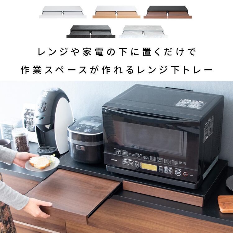 電子レンジや家電の下に置くだけで作業スペースを作ることができる80cm幅の2連タイプレンジ下トレーです。