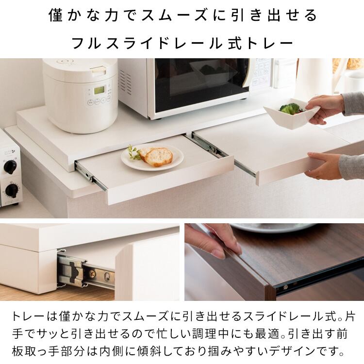 僅かな力でスムーズに引き出せるフルスライドレール式のトレーは片手で引き出せるので、忙しい調理中にも最適です。
