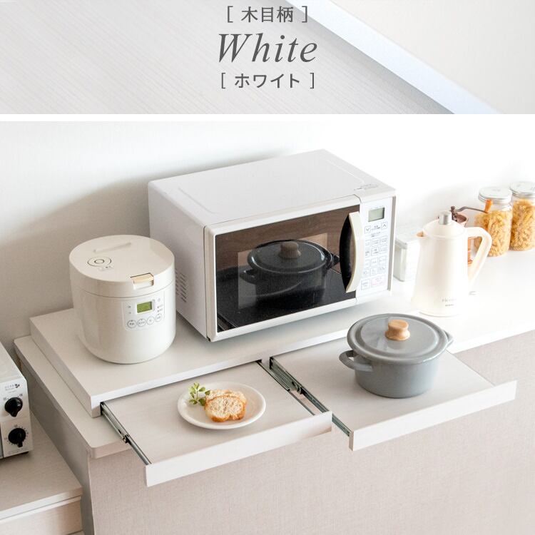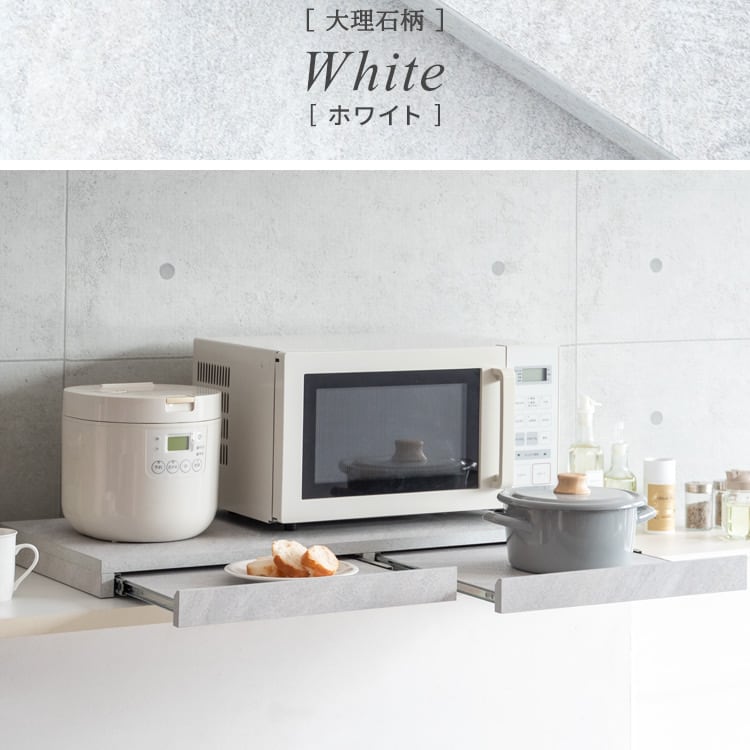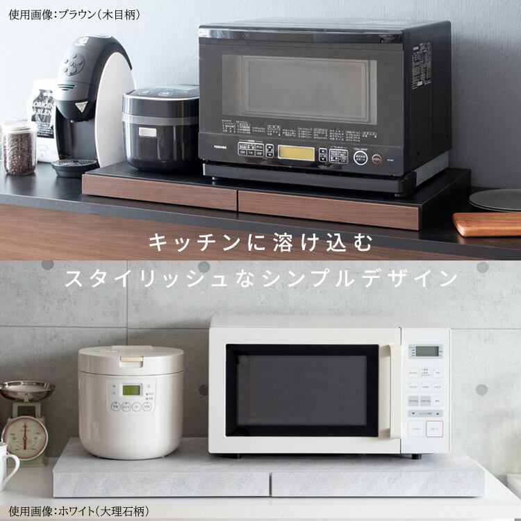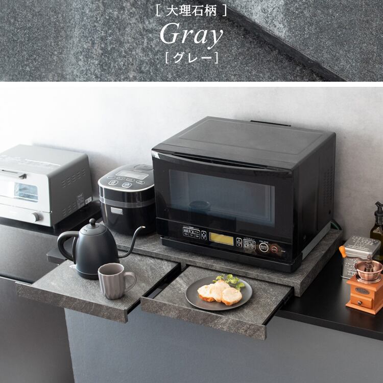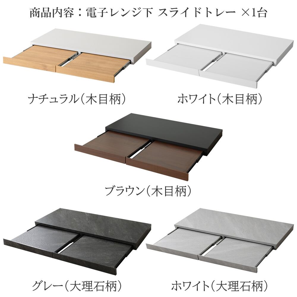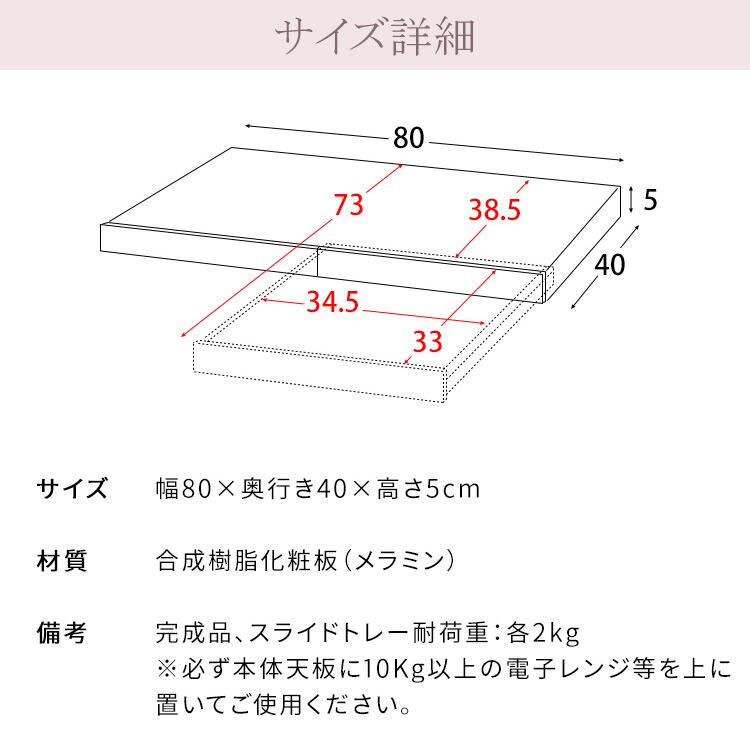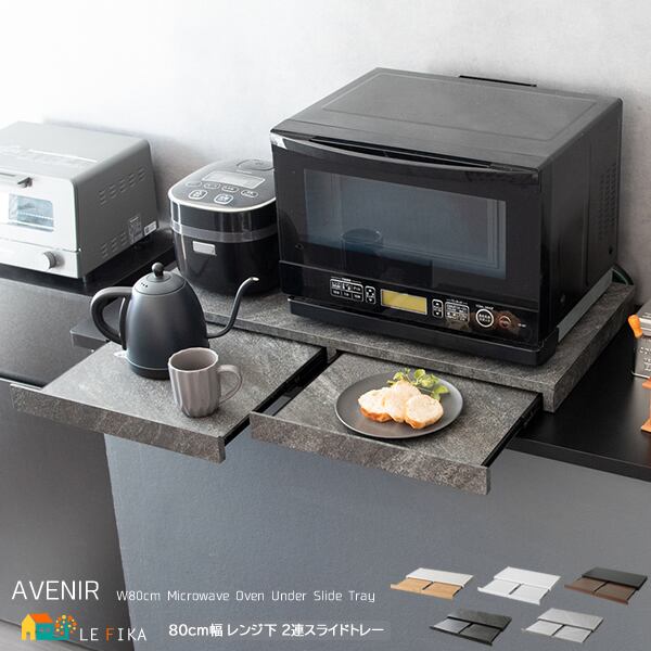 レンジ下スライドトレー 2連タイプ 80cm幅 木目柄ブラウン 木目柄ナチュラル 木目柄ホワイト 大理石柄グレー 大理石柄ホワイト 電子レンジ下トレー 完成品 キッチン用品 おすすめ おしゃれ 北欧 モダン レンジ下作業台 幅80cm 奥行40cm 高さ5cm キッチン家電下二連トレー