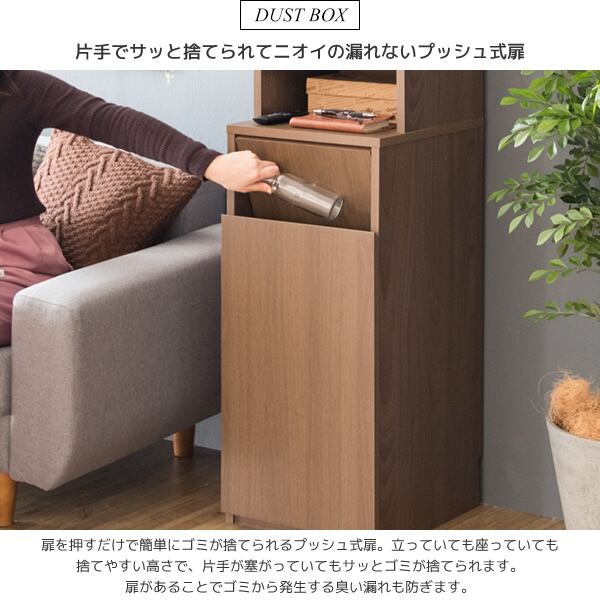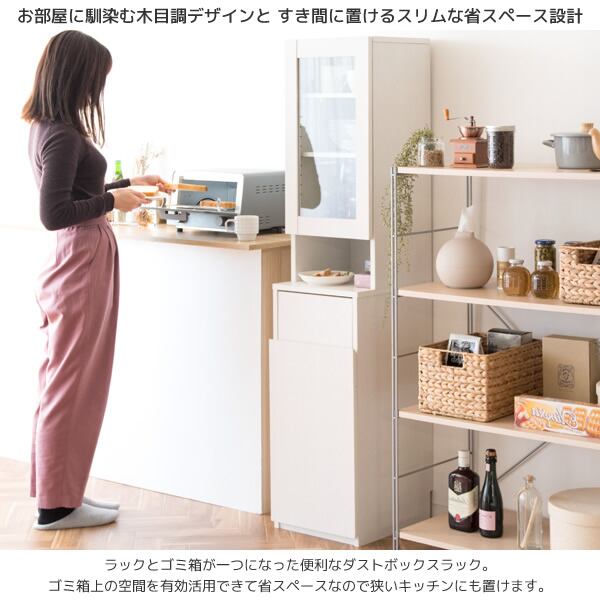 ラックとゴミ箱が一つになっているので、ゴミ箱上の空間を有効に活用できる省スペースで利用可能な35cm幅のダストボックスラックです。