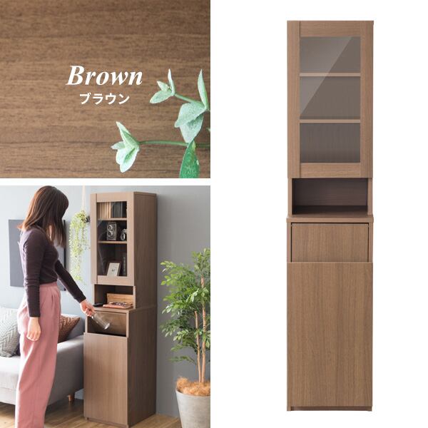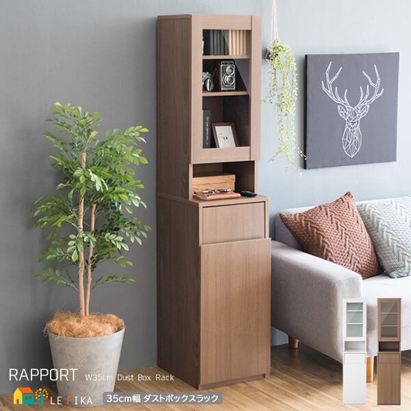 ゴミ箱付きキッチン収納ラック 35cm幅 ブラウン ホワイト キッチン収納 スリム 隙間収納 キッチン収納ラック ゴミ箱付きラック ダストボックスラック おすすめ おしゃれ 北欧 モダン スタイリッシュ 扉付き収納 可動棚 収納棚 ゴミ箱 くずかご 45リットル プッシュ式扉 ガラス扉 キッチンラック スリム コンパクト 省スペース キッチン隙間収納