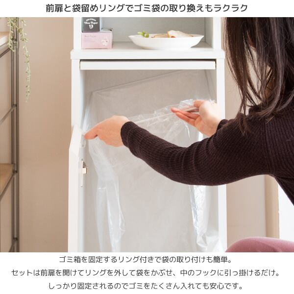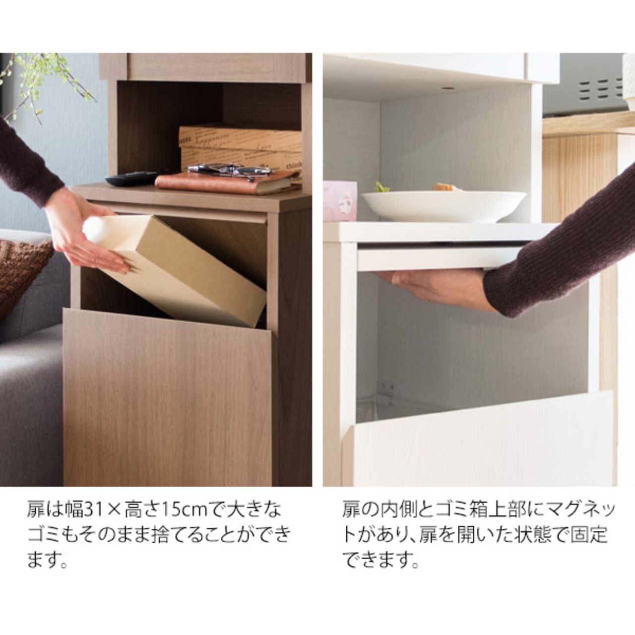 幅(約)35cmとスリムなサイズ感で家具や家電の隙間に設置しやすいゴミ箱付きキッチン収納ラックです。