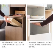 下部のゴミ箱は扉を押すだけで簡単にゴミを捨てることができるプッシュ式扉を採用しており、扉を設けることでゴミから発生する臭い漏れを防ぎつつ、片手でサッとゴミを捨てることができます。