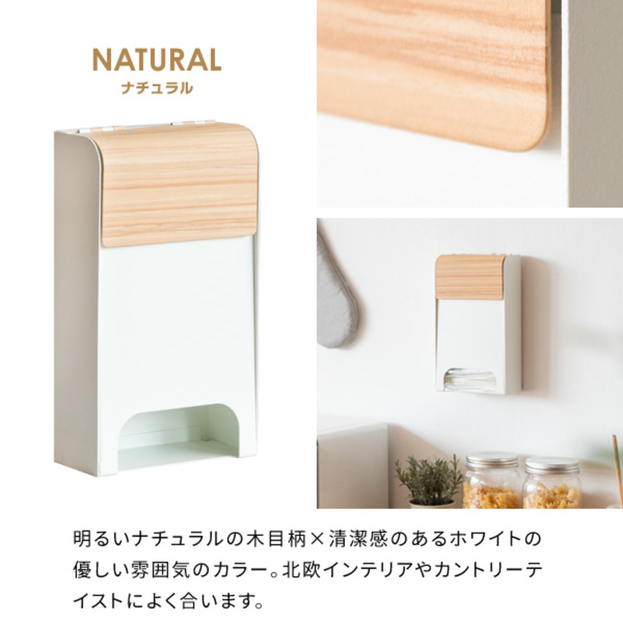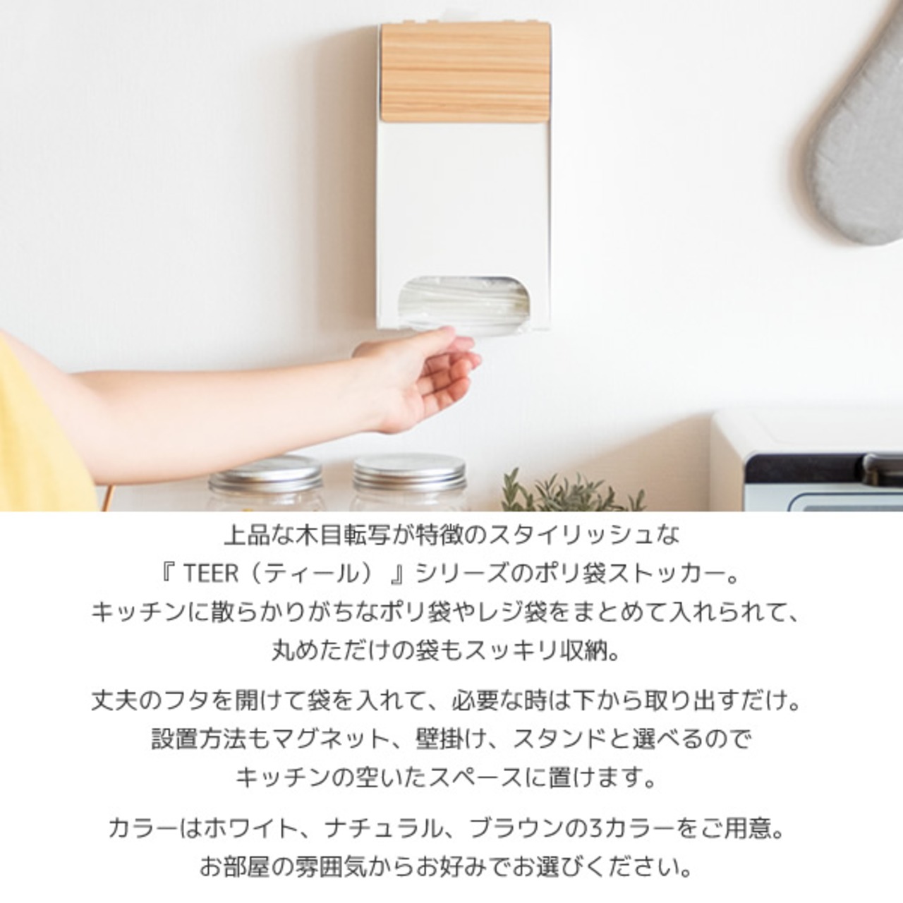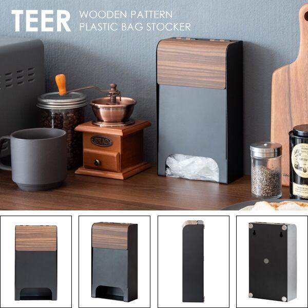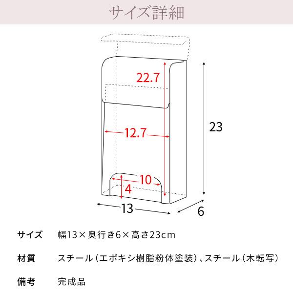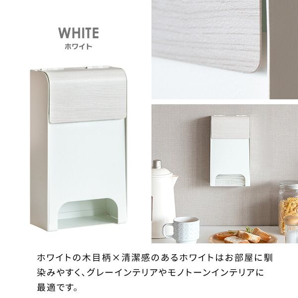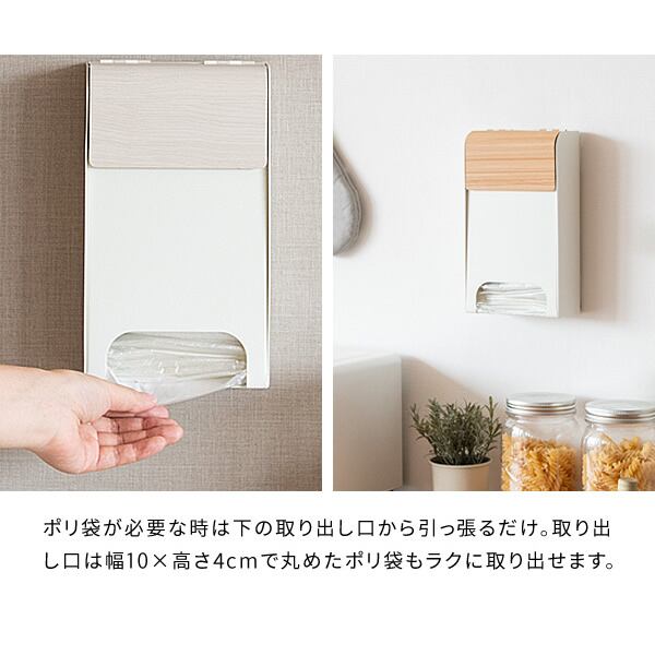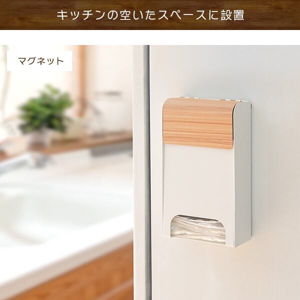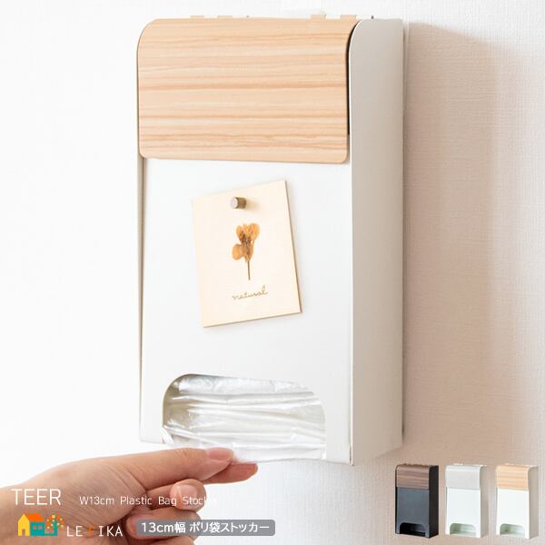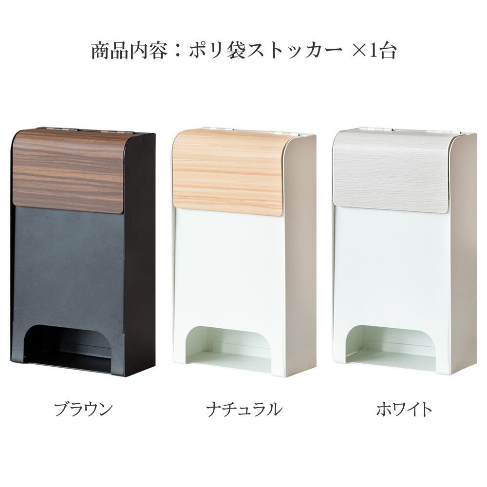 ポリ袋ストッカー 13cm幅 ブラウン ナチュラル ホワイト ポリ袋 レジ袋ストッカー 壁面取り付け マグネット取り付け 自立式 おすすめ おしゃれ 北欧 モダン スタイリッシュ 木目調 スチール製 レジ袋収納 ポリ袋収納 キッチン収納 簡単取り付け 背面マグネット付き