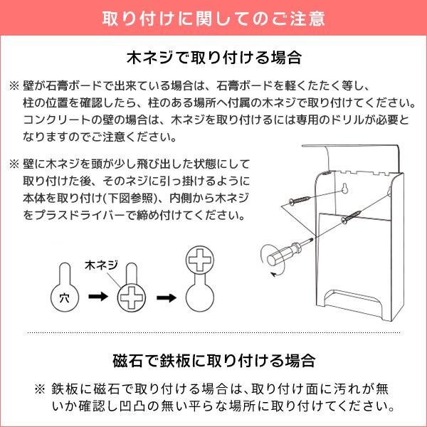 ・壁面取付(壁掛け)設置時の注意事項につきましては画像でも必ずご確認をお願い致します。