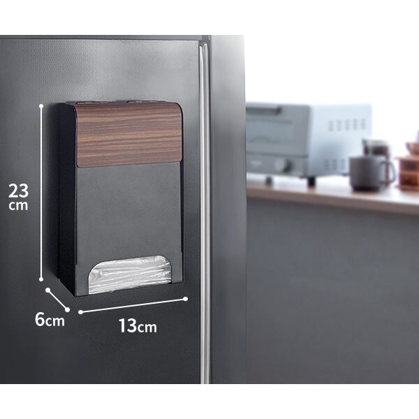 ポリ袋ストッカー 13cm幅 ブラウン ナチュラル ホワイト レジ袋収納 ポリ袋収納 背面マグネット 自立式 壁面取付可能 おすすめ おしゃれ モダン スタイリッシュ キッチン収納 ビニール袋収納 ビニール袋ストッカー コンパクト スリム 省スペース 幅13cm 奥行6cm 高さ23cm