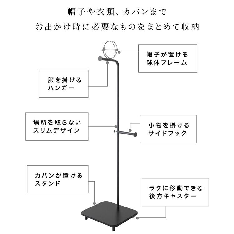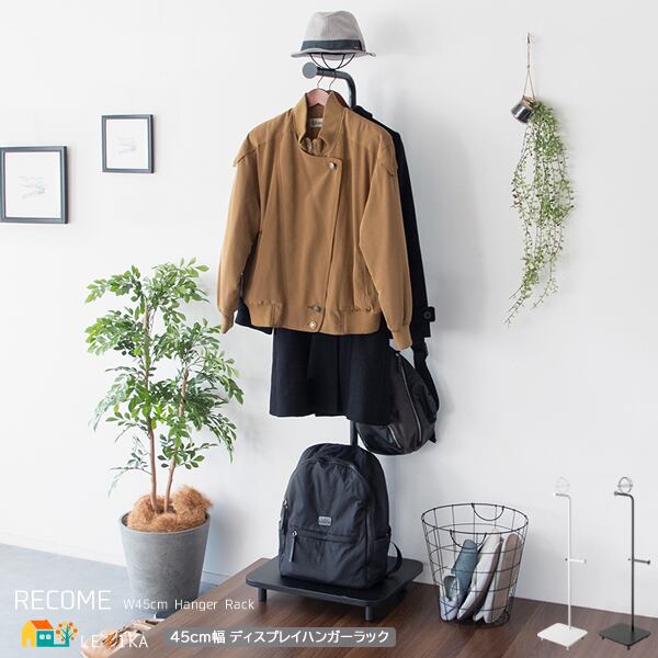ハンガーラック 45cm幅 ブラック ホワイト 白 黒 帽子ラック 鞄ラック 棚板付き 衣類ラック 洋服ラック コートハンガー キャスター付きラック ストールラック おすすめ おしゃれ モダン スタイリッシュ スリム コンパクト 省スペース 2輪キャスター付き ロングコート掛け ワンピース掛け マフラー掛け ストール掛け リビング収納 寝室収納 玄関収納
