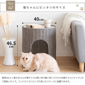 直径40cm、高さ46.5cmのスリムでコンパクトな設計で、リビングの空いたスペースなどに設置しやすく、暗い所や狭い所に入りたがる猫ちゃんにぴったりのサイズ感です。