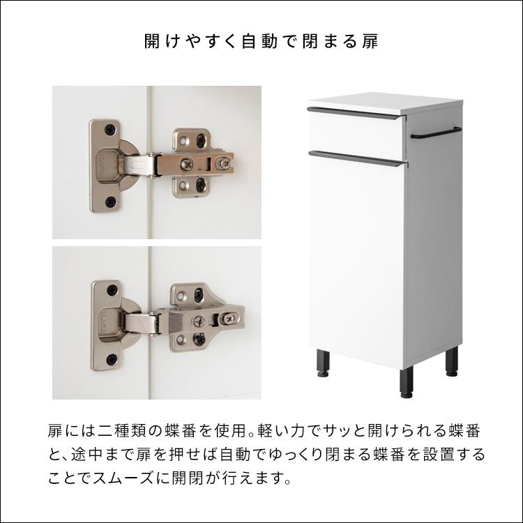 引き出し収納は古スライドレールでわずかな力でサッと引き出せて必要なものをすぐに取り出せます。