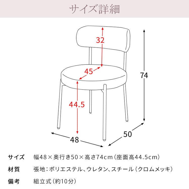 ■商品サイズ(約):幅48cm、奥行き50cm、高さ74cm、座面高44.5cm