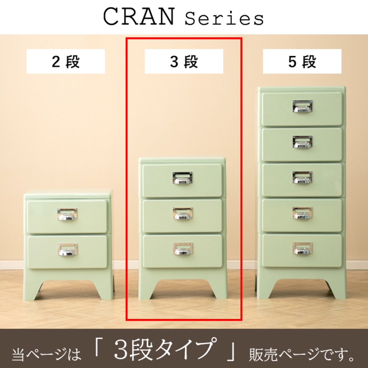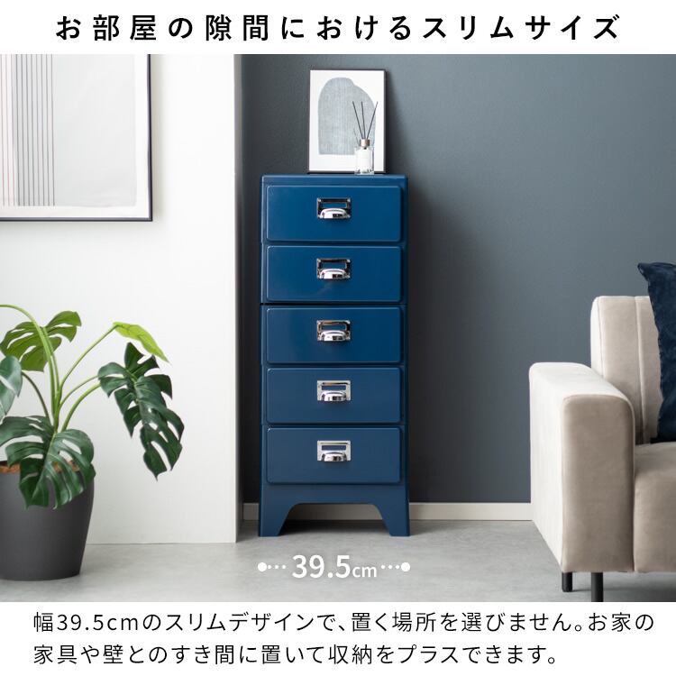 スリムなデザインで設置場所を選ばない39.5cm幅の3段チェストです。