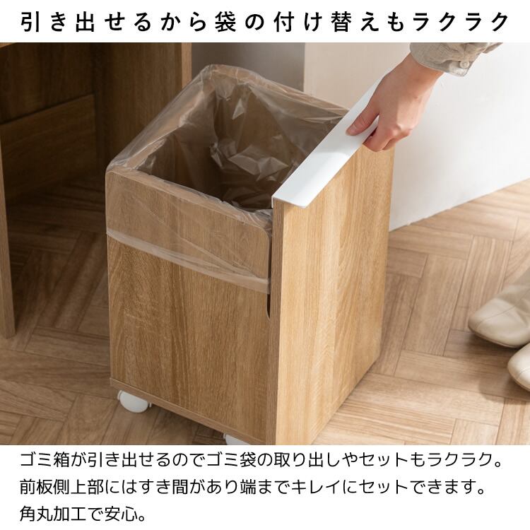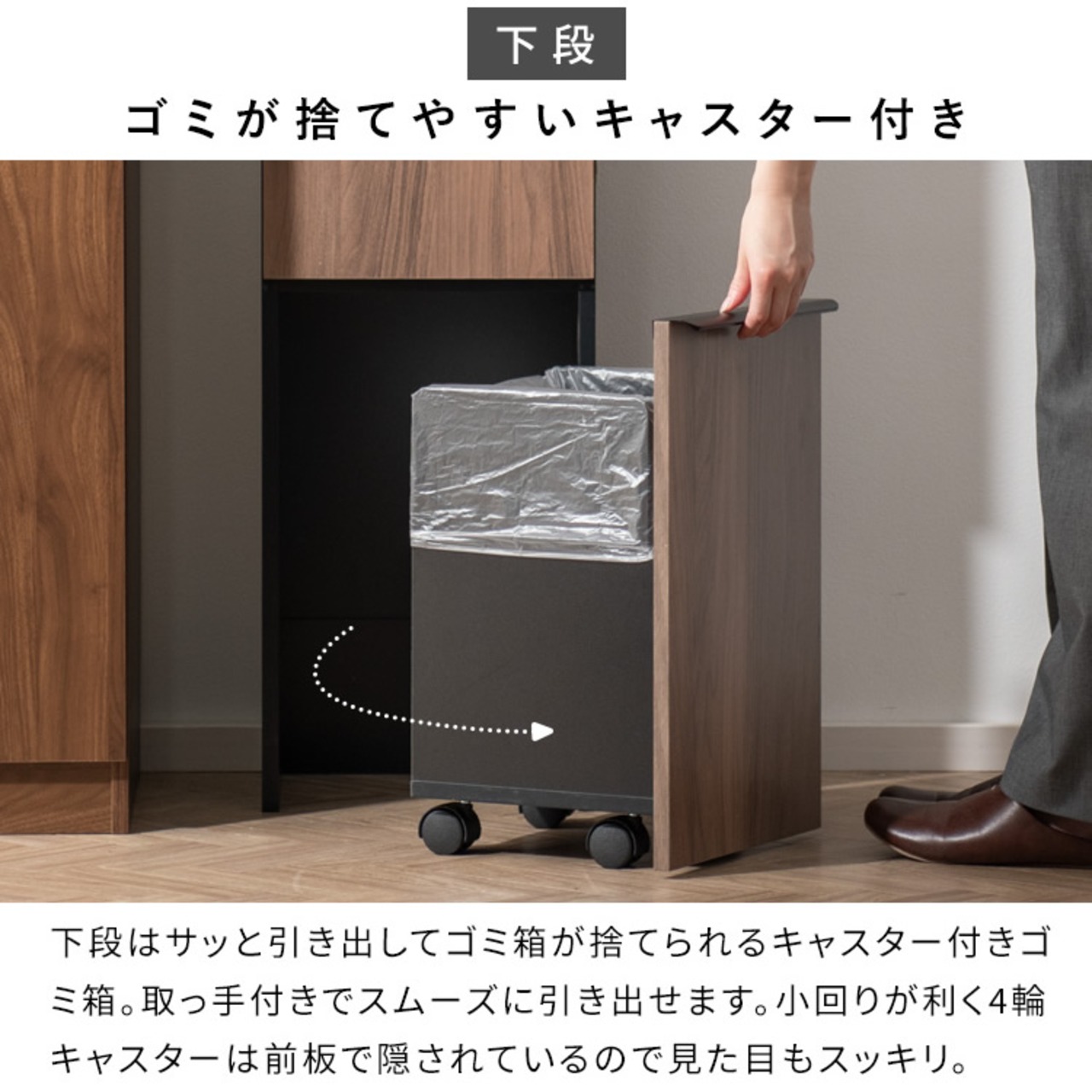 下段はサッと引き出してゴミを捨てやすいキャスター付きゴミ箱仕様になっています。
