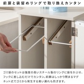 上段ゴミ袋のセットは強度の高いスチール製のリングに袋をかぶせ、フックに差し込むだけで簡単にセット可能です。
