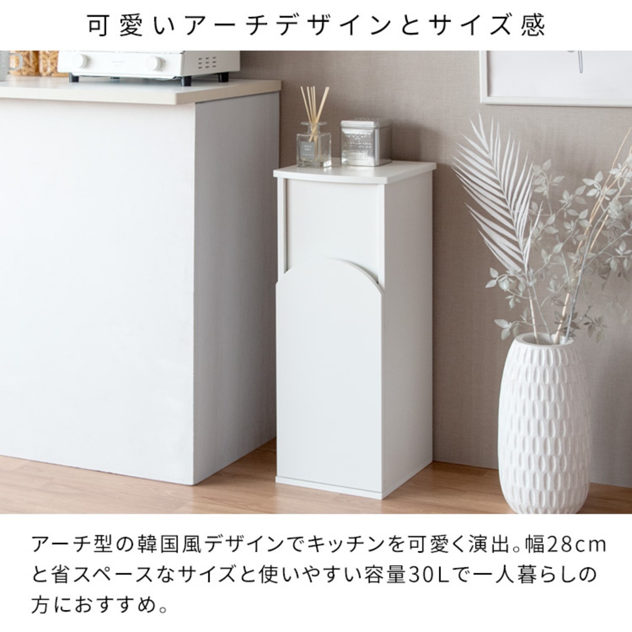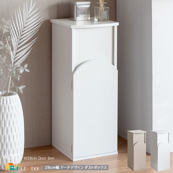 アーチ型デザインゴミ箱 28cm幅 グレージュ ホワイト 扉付きゴミ箱 くずかご ごみ入れ ゴミ箱 ダストボックス トラッシュカン プッシュ扉式 扉付きくずかご おすすめ おしゃれ 北欧 モダン スタイリッシュ リビング ダイニング キッチン 書斎 30リットルゴミ袋対応 スリム コンパクト 省スペース ごみ箱 ごみばこ