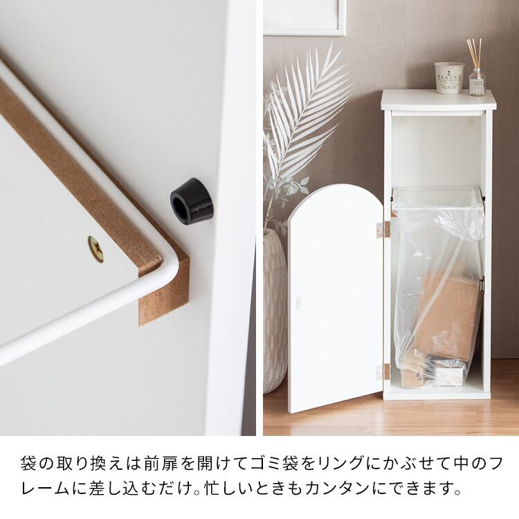 袋の取り換えは前扉を開けてゴミ袋をリングにかぶせて中のフレームに差し込むだけなので忙しい時も簡単に取り換えが可能です。