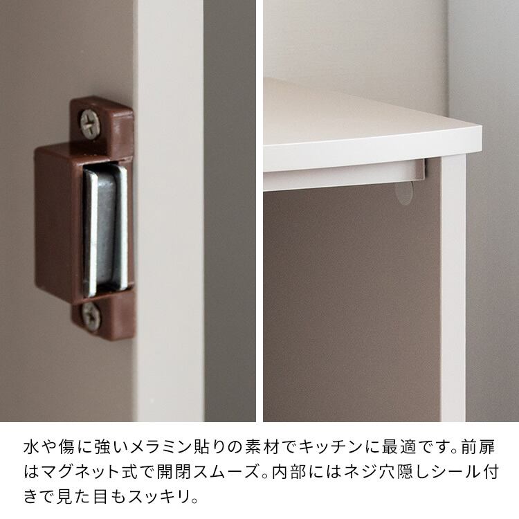扉は天板にマグネットで固定できるので、快適に使用でき、ストッパー付きで閉じた時も絶え扉に当たりません。