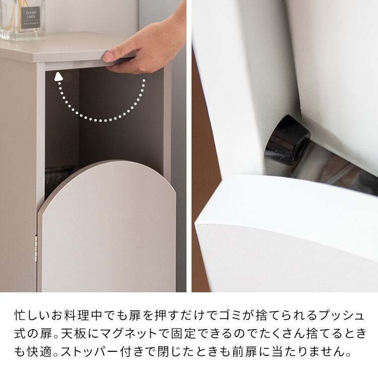 扉を押すだけでゴミを捨てることができるプッシュ扉式の扉付きの28cm幅のゴミ箱です。