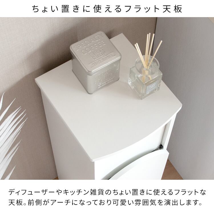 雑貨やディフューザーなどちょっとした小物を置いておくのに便利なフラット天板で、前側がアーチになっているので可愛い雰囲気を演出します。