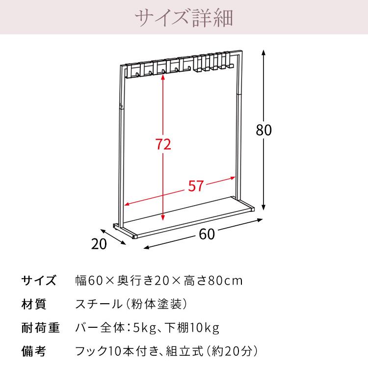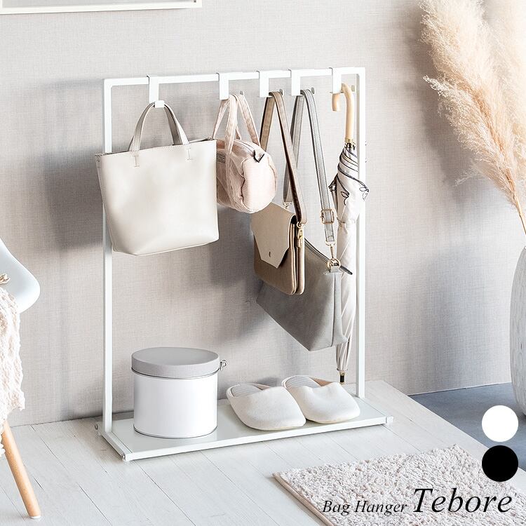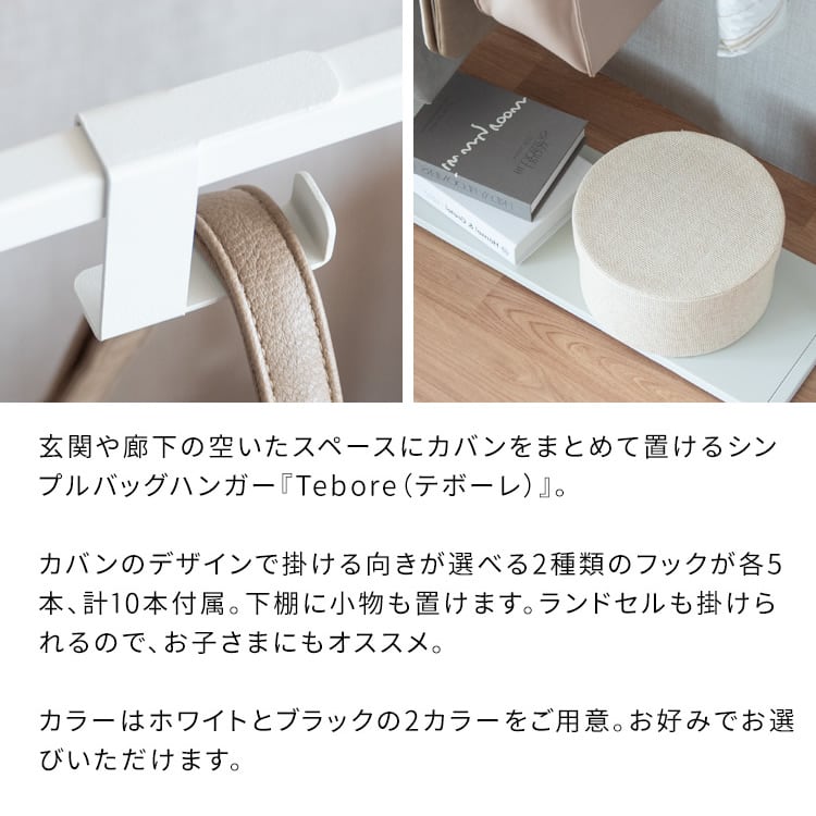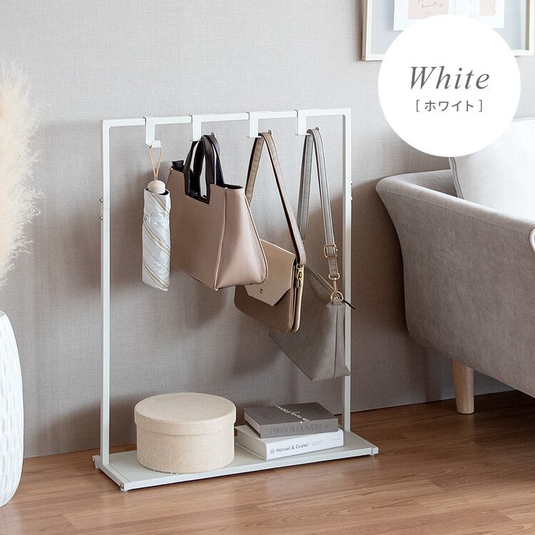 バッグハンガーラック 60cm幅 ブラック ホワイト 収納棚付き 専用フック付き キッズハンガーラック 鞄ラック おすすめ おしゃれ モダン スタイリッシュ フック付きハンガーラック リビング収納 玄関収納 玄関ハンガーラック 幅60cm 奥行20cm 高さ80cm 棚付きハンガーラック