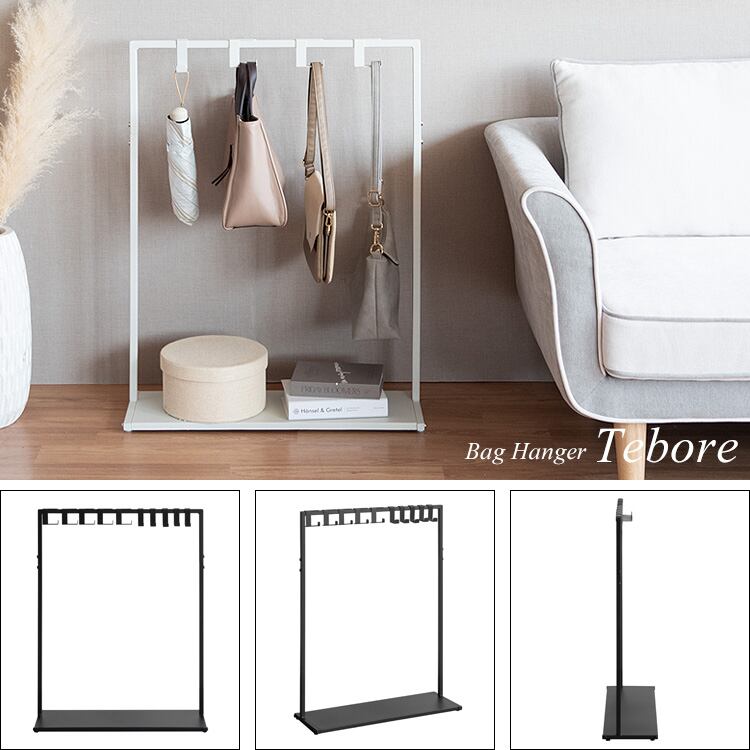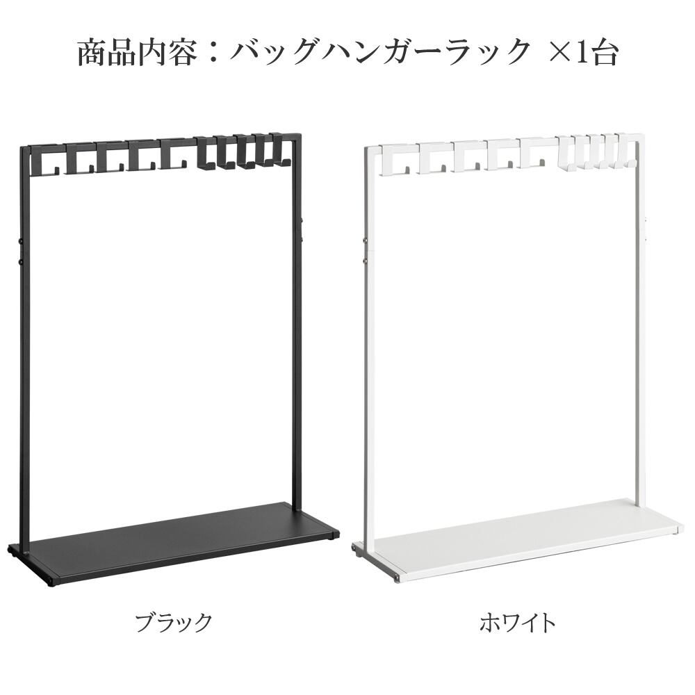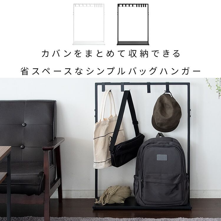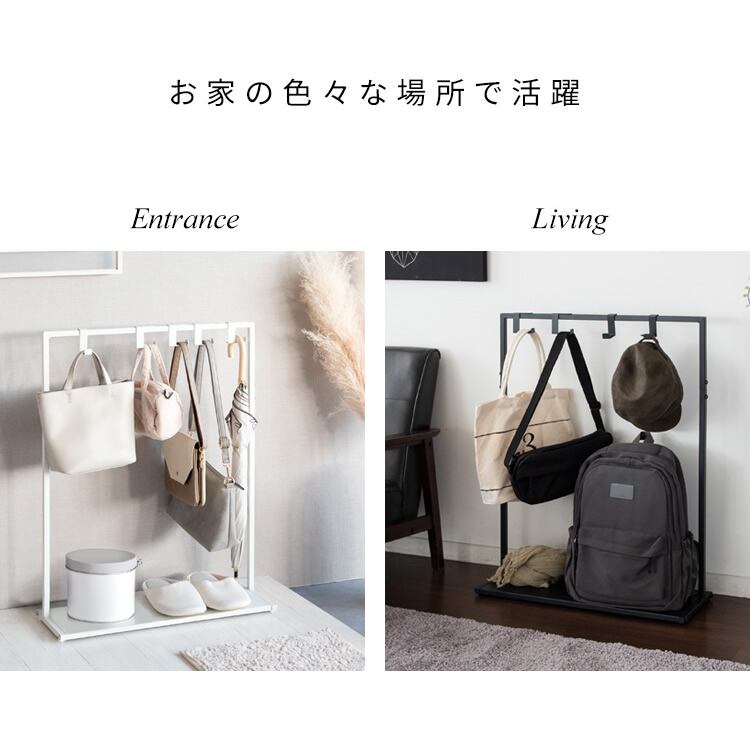 バッグハンガーラック 60cm幅 ブラック ホワイト 黒 白 ハンガーラック 下棚付き 玄関ハンガーラック 鞄掛けラック ランドセルラック キッズハンガーラック 棚付きハンガーラック 専用フック合計10本付き おすすめ おしゃれ 北欧 モダン スタイリッシュ アジャスター付き 鞄収納ラック リビング収納 玄関収納 子供部屋収納 スリム コンパクト 省スペース スチール製 鞄用ラック
