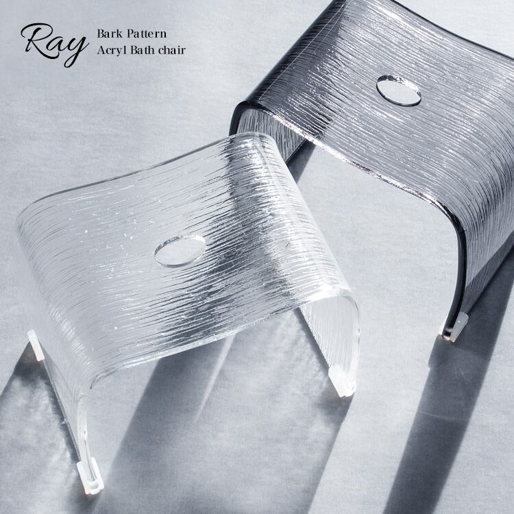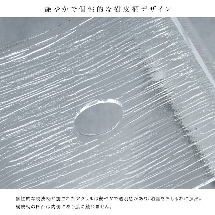 樹皮を模した凹凸デザインのバスチェアは、丈夫で使い勝手の良いアクリル製で、透明感のある艶やかなチェアが高級感のある浴室を演出します。