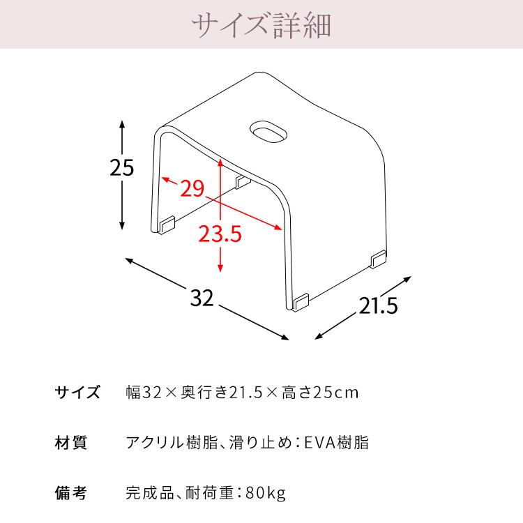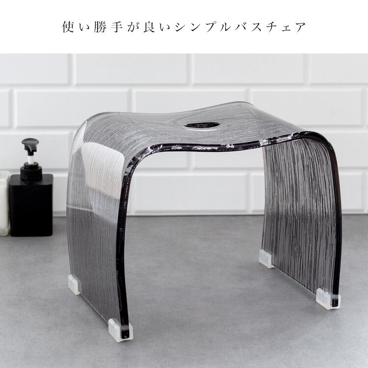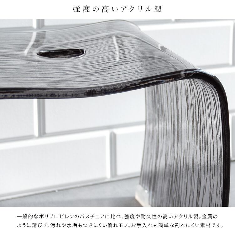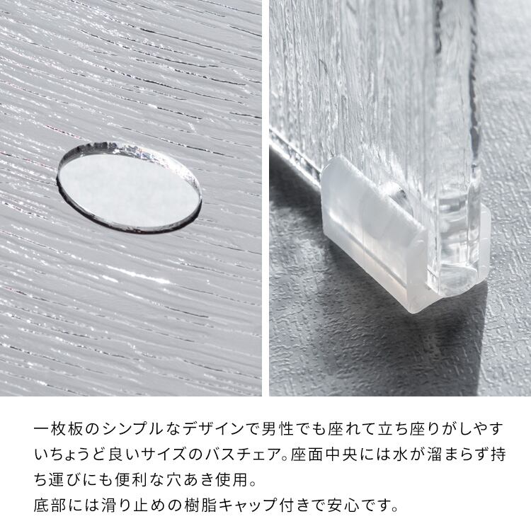 透明感のあるスタイリッシュな樹脂柄デザインが特徴的な32cm幅のアクリル製バスチェアです。