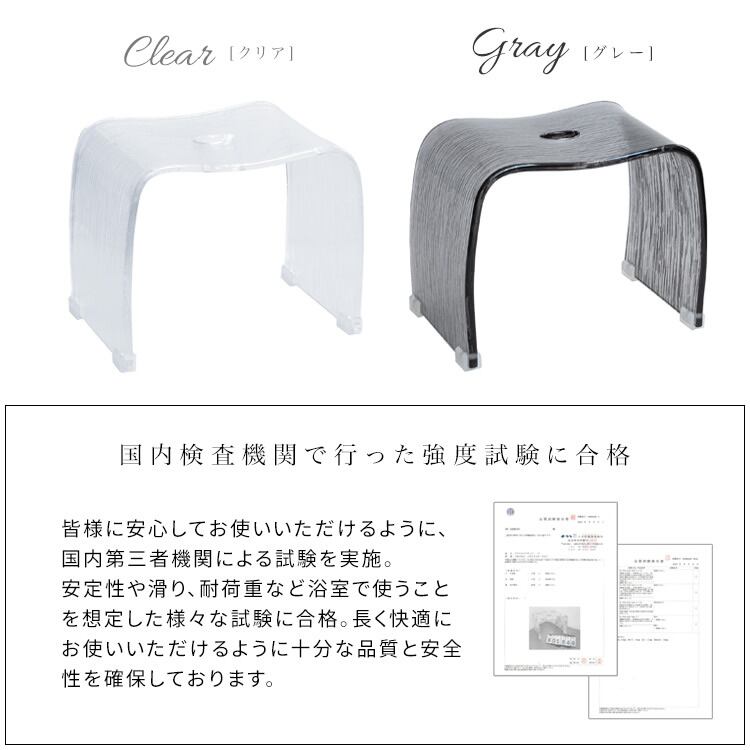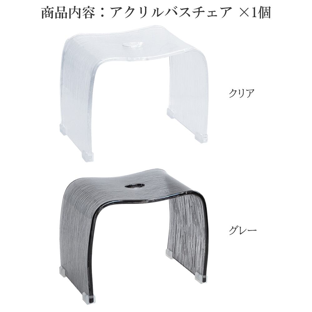 バスチェア 32cm幅 グレー クリア アクリルバスチェア お風呂の椅子 お風呂のチェア アクリル製チェア 底面滑り止め付き 高耐久 高強度 おすすめ おしゃれ スタイリッシュ お風呂用椅子 お風呂用チェア 錆びない コンパクト 椅子 チェア