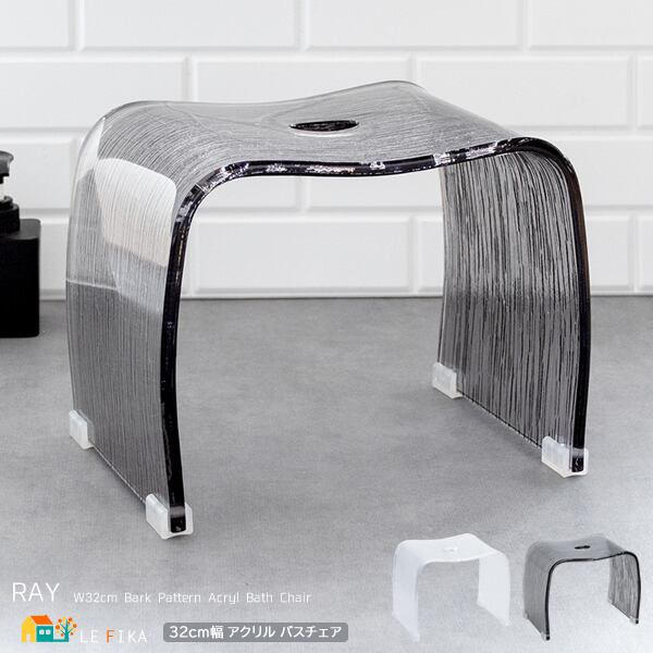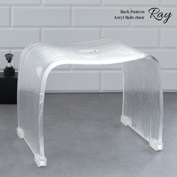 バスチェア 32cm幅 グレー クリア 透明 アクリルバスチェア アクリルチェア 樹皮柄 風呂の椅子 バス用チェア 風呂のチェア おすすめ おしゃれ スタイリッシュ シンプル 高耐久 錆びない 滑り止め樹脂キャップ付き 幅32cm 奥行21.5cm 高さ25cm 椅子 チェア お風呂用の椅子