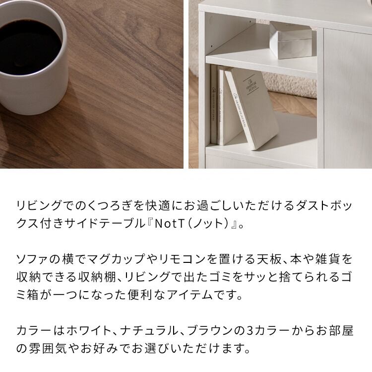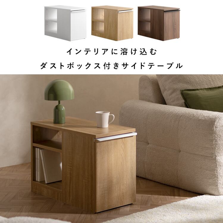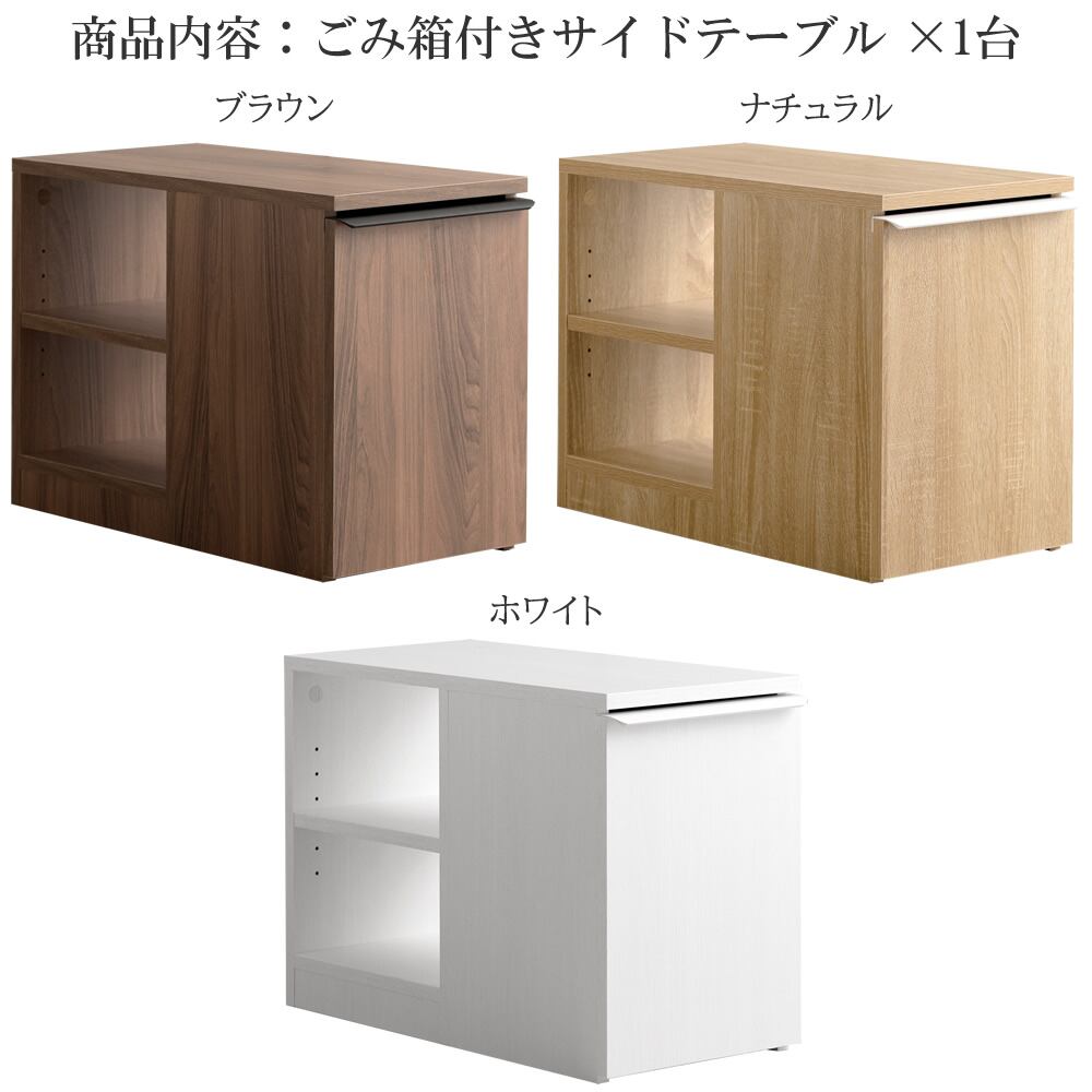 ゴミ箱付きサイドテーブル 65cm幅 ブラウン ナチュラル ホワイト サイドテーブル ソファサイド ベッドサイド 収納付きテーブル 可動棚 ごみ箱 ダストボックス くずかご くず入れ ごみ入れ キャスター付きゴミ箱 20リットル おすすめ おしゃれ 北欧 モダン スタイリッシュ 木目調 ごみばこ テーブル