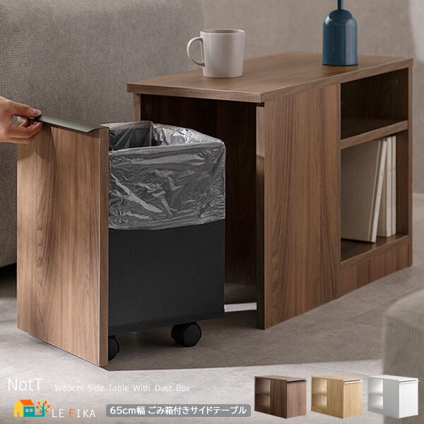 ゴミ箱付きサイドテーブル 65cm幅 ブラウン ホワイト ナチュラル サイドテーブル ソファサイド ベッドサイド おすすめ おしゃれ 北欧 モダン スタイリッシュ 木目調 ゴミ箱 キャスター付きゴミ箱 20リットル くずかご ごみいれ ごみばこ 幅65cm 奥行30cm 高さ45cm テーブル