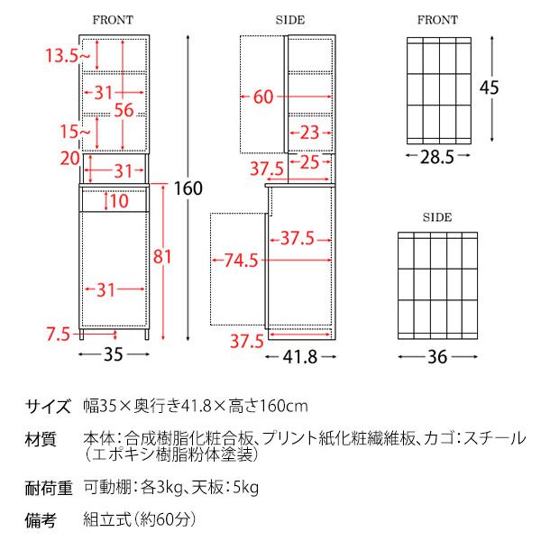 ■商品サイズ(約):幅35cm、奥行41.8cm、高さ160cm