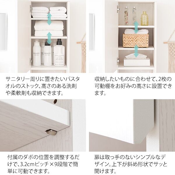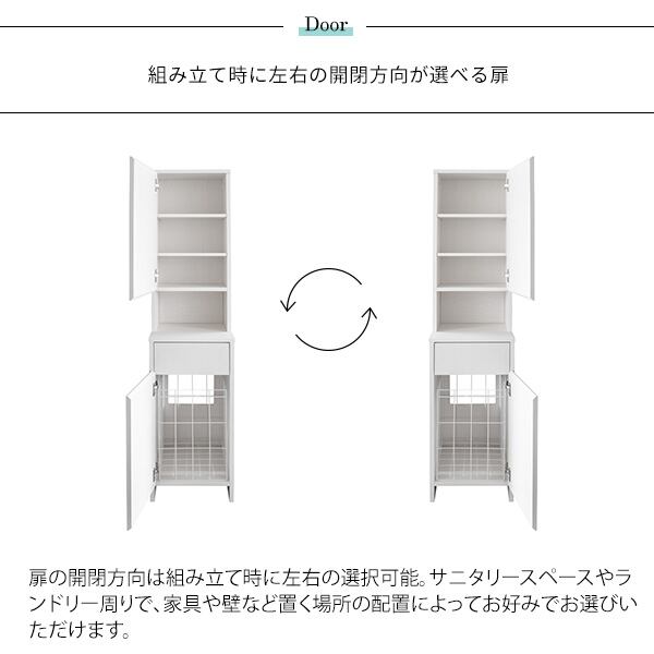扉の開閉方向は組み立て時に左右の選択が可能で、サニタリースペースやランドリースペースなど、設置場所に合わせてお好みでお選びいただけます。