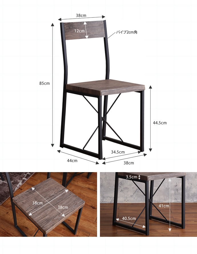 ・チェア:幅38cm、奥行44cm、高さ85cm、座面高41cm